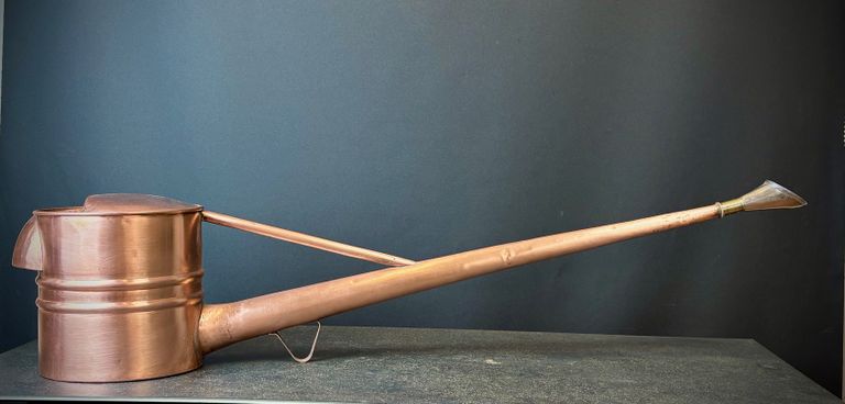 Seltenheitswert! Hochwertig restaurierte, alte 4l Negishi Kupfer Gießkannen mit langem Auslauf!